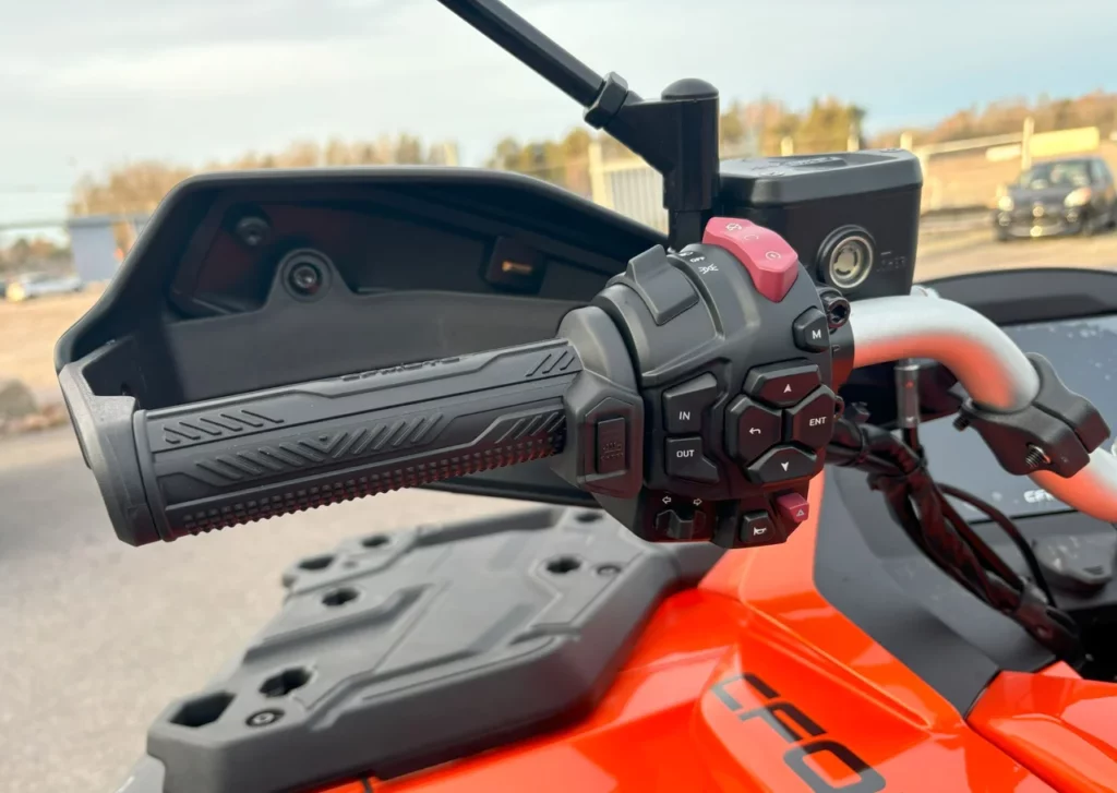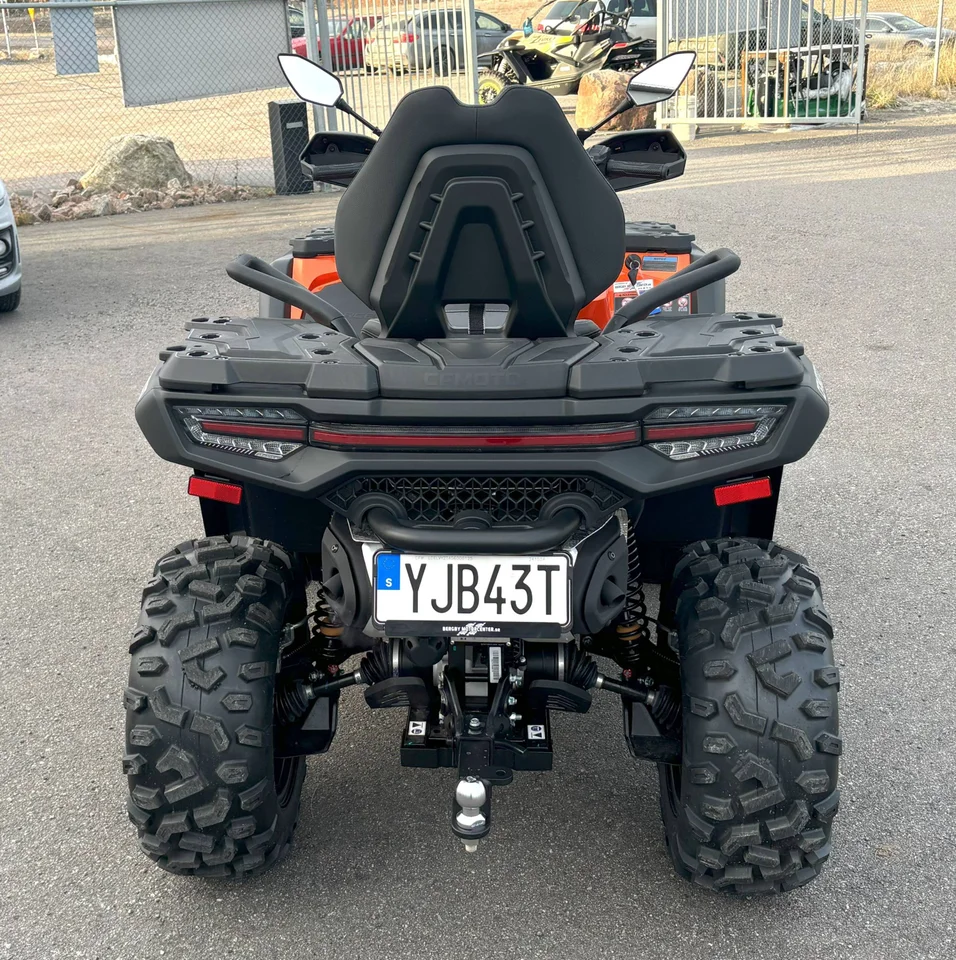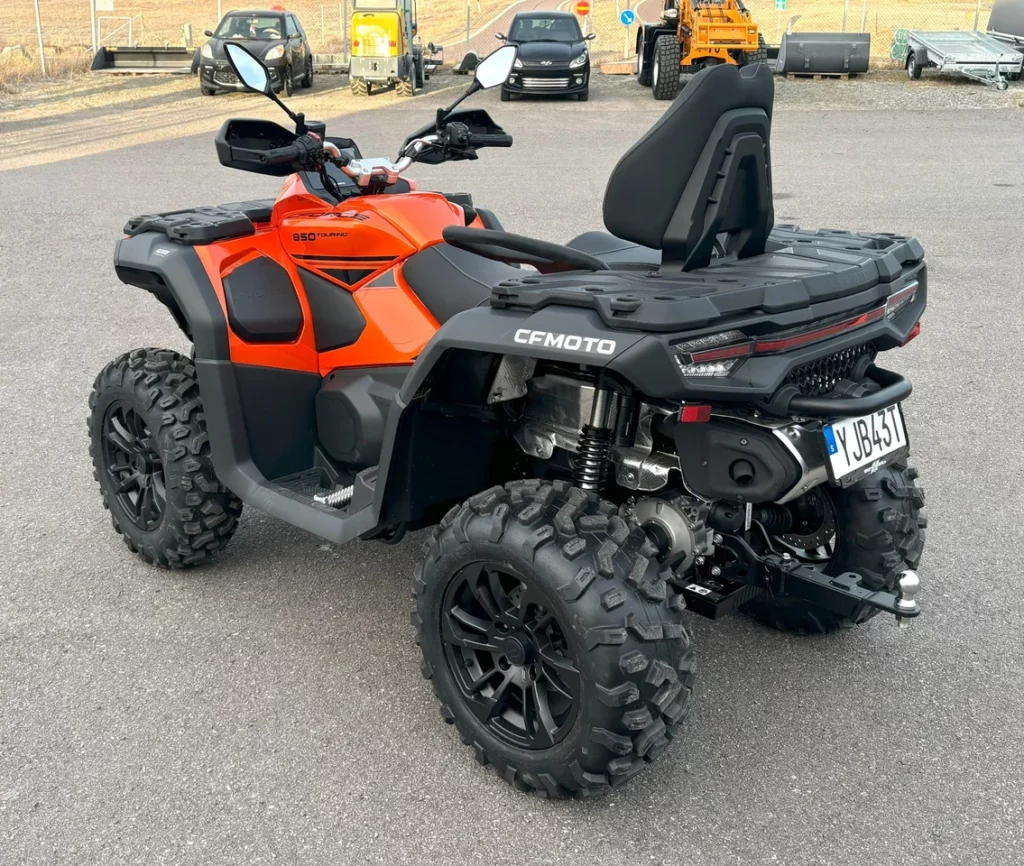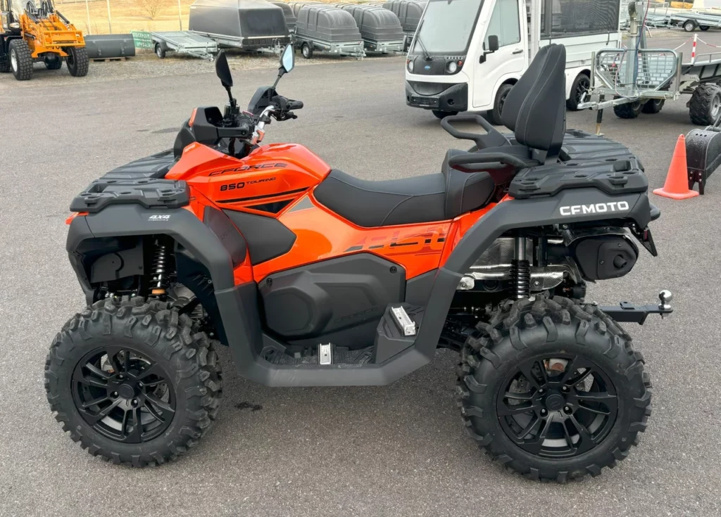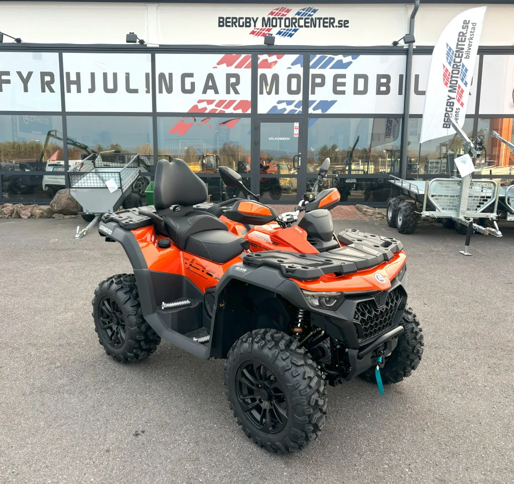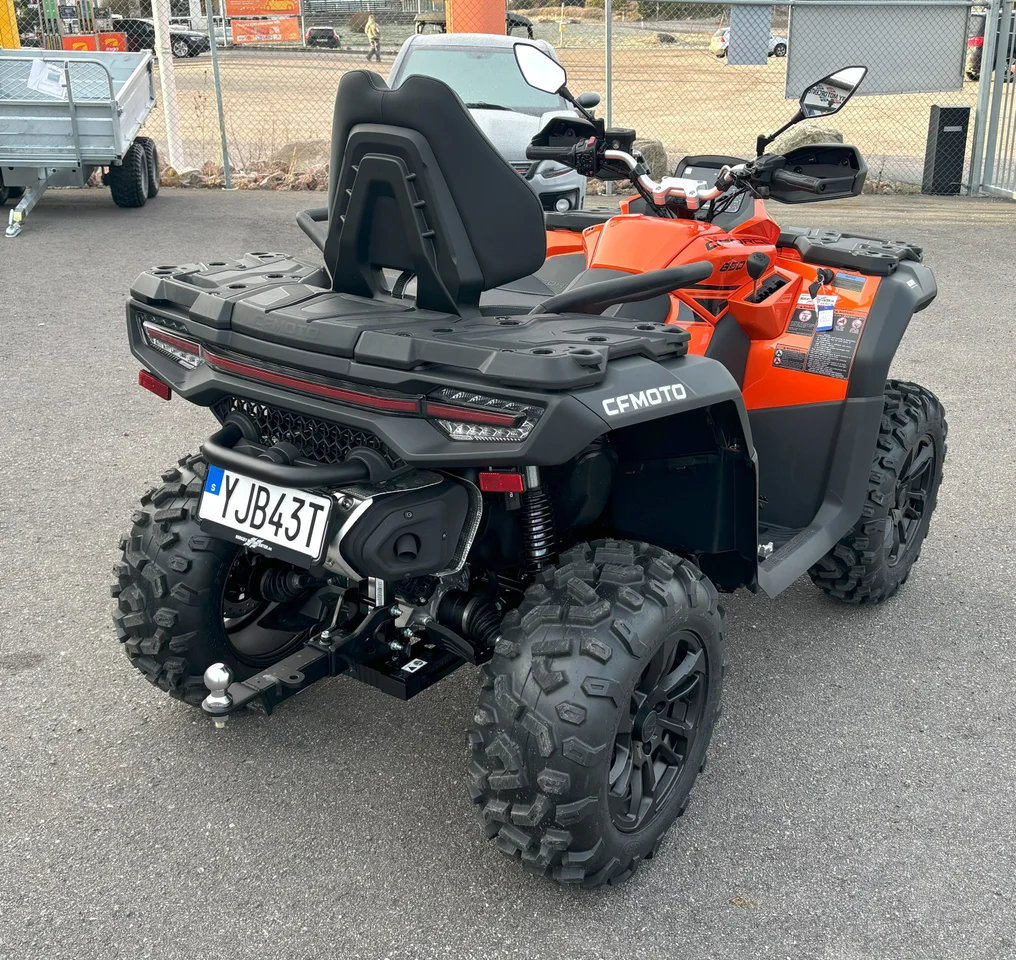 Nu med marknadsledande effekt och bättre svängradie än tidigare / olika körlägen / olika EPS val / High Intensity LED / 7" TFT skärm är några av de nya förbättrade egenskaperna! - 52, 5kw/71hk - 3 Körlägen - 3 EPS-lägen - Bakre differential - 295mm Markfrigång - 820kg Dragvikt - Handtagsvärmare standard CFORCE 850 ger med sina mattsvarta fälgar och snygga tvåfärgade lack ett imponerande intryck! Nu ännu mera kraftfull med en mångsidighet och prestanda som gör varje uppdrag till en upplevelse. Med servostyrning och rejäla däck anpassade för tuff terräng kommer du aldrig tvivla på nya Cforce 850. Garanti: 3år Önskas registreringsform: T3A (Traktor A) eller T3B (Traktor B) tillkommer 4 000 kr ink moms. Teknisk data: Motor: V-twin, 4-takt Cylindervolym: 800cc Vridmoment 70 Nm / 7500 rpm Effekt: 52 kW / 71 hk Drivning: 2WD / 4WD / 4WD LOCK Bränslesystem: Bosch EFI Körlägen: Sport / Normal / Work Tändsystem: ECU Transmission: CV-Tech. P-R-N-H-L. Servostyrning: Ja. 3 olika lägesval. Bromsar: Hydrauliska skivbromsar Hjulupphängning: Dubbla A-armar Stötdämpare: Gasstötdämpare Däck (DxB-D): Fram: 26×9-14. Bak: 26×11-14. Fälgar: Lättviktsmetall Instrumentering: 7" TFT Ryggstöd: Ja Längd: 244, 5 cm Höjd: 145 cm Bredd: 126, 4 cm Sitthöjd: 93 cm Markfrigång: 29, 5 cm Hjulbas: 148 cm Tankvolym: 26L Tjänstevikt 540 kg Led-belysning (max: 43000cd) Vinsch fram - 3500LB (1585kg) Dragkula bak Förslag på vanliga tillval: - Hasplåt i Alu. / eller plast inkl montering, 6 995 kr. - Vinsch Bak inkl fäste och montering, 5 995 kr. - Packbox bak monterad, 3 590 kr. - Handtags- och tumvärmare inkl montering, 1 895 kr. - Nätkorg fram (modellanpassad) inkl montering, 3 395 kr. - Led Ramp fram ink montering, 3 990 kr. Kontakta oss så hittar vi en finansieringslösning som passar just dig. Vi tar inbyten och förmedlingsuppdrag på tex CF Goes Segway Polaris Yamaha Kawasaki Suzuki Honda Can Am. Varmt välkommen in för provkörning hos oss på Bergby Motorcenter Fullerö Backe.