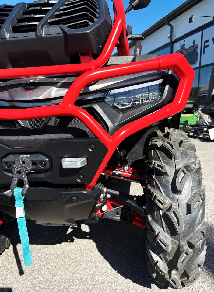 Bergby Motorcenter presentera det nya tillskottet i CFORCE familjen - CFORCE 1000 MV. Det här är inte en maskin för fina skogsvägar. CFORCE 1000 MV är byggd för djup lera, hårda spår och terräng där andra maskiner vänder om. Mud Version är utvecklad för att ta sig fram där underlaget är mjukt, spåren djupa och vägen knappt existerar. Med fabriksmonterade 30” grovmönstrade MT-däck, en rejäl markfrigång på 334 mm och en uppflyttad kylare för optimerad temperaturhållning i lerig terräng, är MV ett verktyg för förare som vill gå hela vägen – oavsett vad underlaget säger. Den upphöjda kylaren är inte bara en visuell signal – den är en avgörande komponent för att bibehålla prestanda när leran stänker, vattnet skvätter och fläkten annars riskerar att ge upp. Tillsammans med det förstärkta skyddet och det grova fotfästet är detta en maskin byggd för verklig offroadkörning, där både du och din maskin måste kunna lita på varandra. CFORCE 1000 MV är inte en maskin för alla – den är för dig som söker mer än bara framkomlighet. För dig som vill köra där andra kliver av. För dig som inte bara accepterar utmaningar, utan letar efter dem. Välj MV om du vet vad du gör. Eller om du är redo att ta reda på det.