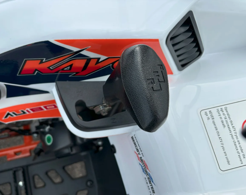 Beskrivning En robust ATV med motor på 180cc som passar det lite större barnet, eller varför inte hela familjen! Utrustad med både lastrack och en 50mm dragkula, vilket för att den ser ut som en vuxen maskin. Finns hemma för omgående leverans! Trevlig fyrtaktsmotor med automat: F-N-B. Belysning fram. 50mm kula bak. Lastracket fram & bak. Info: Motor: 177 CC. Bränslesystem: Förgasare, CDI Box. Bränsle: 98 blyfri. Tank volym: 5, 5L. Startsystem: El start. Växelsystem: Automatisk, neutral samt back Hjulupphängning: Fram: Dubbla A-armar med dubbla stötdämpare. Bak: Swing med stötdämpare. Däck: Fram: AT 23×7-10. Bak: AT 22×10-10. Bromsar: Fram: Dubbla skivor, hydrauliska. Bak: Enkel skiva, hydrauliskt. Max last inklusive förare: 80 kg. Vikt: Ca 155 kg. Mått: Längd: 1680 mm Bredd: 960 mm Höjd: 980 mm Sitthöjd: 730 mm Markfrigång: 150 mm Varmt välkommen in till oss på Bergby Motorcenter Fullerö Backe. Öppettider: Mån-Fre 08.00-17.00, Lör 10.00-14.00 Tel. 018-337166