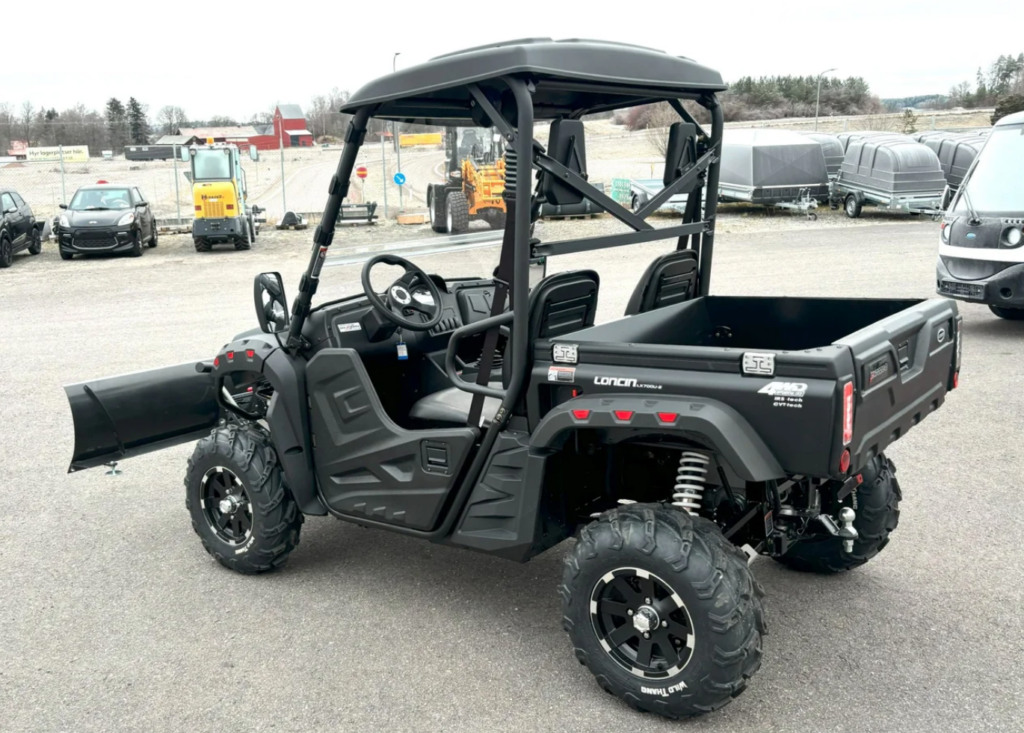 Beskrivning Loncin UWolf 700 UTV är ett mångsidigt arbetsfordon som är idealiskt för dagliga resor, transporter på gårdar och byggarbetsplatser Teknisk specifikation 686cc · 44 HK · 55 N Bränslesystem: EFI (Elektronisk insprutning med låga emissioner och låg ljudnivå) Individuell bak och fravagnsupphängning - Ökar komforten vid körning på ojämnt underlag Bakmonterad dragkrok 50mm, med 7-polig släpvagnskontakt Vinsch i fram Aluminiumfälgar Automatiska växlar (L-H-N-R) CVT Startanordning: Elstart Kardan, (2WD/4WD/i- urkopplingsbar diffspärr fram) Traktor B registrerad(T3B), Får köras på väg och terräng där det är tillåtet. Loncin uWolf har 3 års fabriksgaranti. Mått: Längd: 2927 mm Bredd: 1532 mm Höjd: 1995 mm Hjulbas: 1913 mm Markfrigång: 260 mm Vikt: 605 kg Plog ingår, enligt bilder: Loncin uWolf 700, 180cm plogpaket monterat och klart ! 3mil/7h. Kontakta oss så hittar vi en finansieringslösning som passar just dig. Vi tar inbyten och förmedlingsuppdrag på tex CF Goes Can-Am Segway Polaris Yamaha Kawasaki Suzuki Honda. Välkommen in till oss på Bergby Motorcenter Fullerö Backe. Öppettider: Mån-Fre 08.00-17.00 Lör 10.00-14.00 Tel. 018-337166