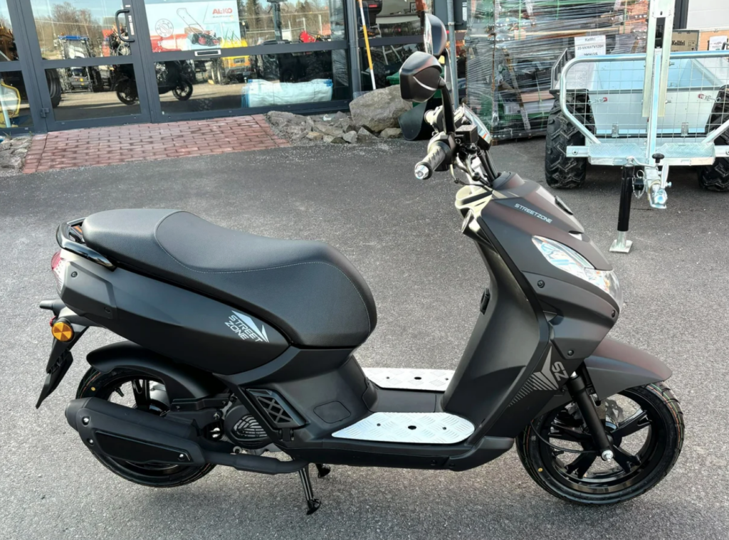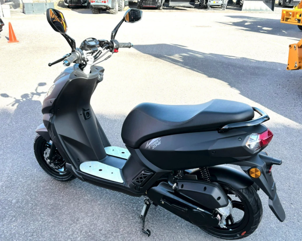 Kampanj! 31 500:- Erbjudandet gäller t.o.m. 31/12-2025, eller så långt lagret räcker. Peugeot Streetzone är en moped som har mycket goda förvaringsmöjligheter, ett plant golv och med fotplattor i aluminium. De infällbara skjutsfotpinnarna gör det möjligt för dig att anpassa mopeden som du önskar för olika åkstilar eller stunts. Denna modell har en 6.3 liters tank och en analog instrumentering. Den sportiga designen gör Peugeot Streetzone till det självklara valet. EU-45 4-takt EURO 5. Vi har förmånliga finansieringslösningar. Vi tar inbyten och förmedlingsuppdrag på mopeder som LV elmoped Niu Derbi Yamaha Drac Rieju Viarelli Super Soco Aprilia. Välkommen in till oss på Bergby Motorcenter Fullerö Backe. Öppettider: Mån-Fre 08.00-17.00 Lör 10.00-14.00 Tel. 018-337166